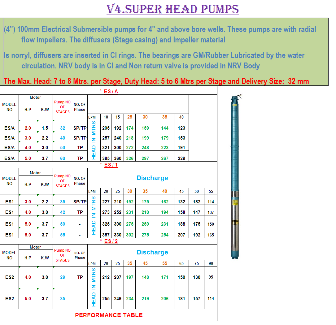 (4 Inches) 100MM submersible pumpsets